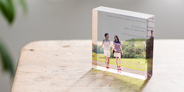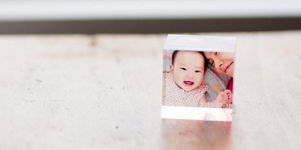 大切なあの日の一枚を、ひとつずつ手作業で加工し、アクリルキューブへと鮮やかに映し出します。名前やメッセージも刻みこめるその「思い出の結晶」は、世界でたった一つのオーダーメイドギフトです。