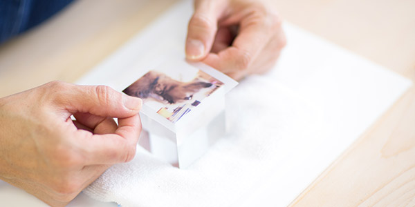 世界でひとつのPHOTO CUBEには、ギフトにふさわしいパッケージを。120年の歴史を誇る老舗和紙店の技光る特製箱に入れてお届けします。あなたのサプライズを上品に演出します。